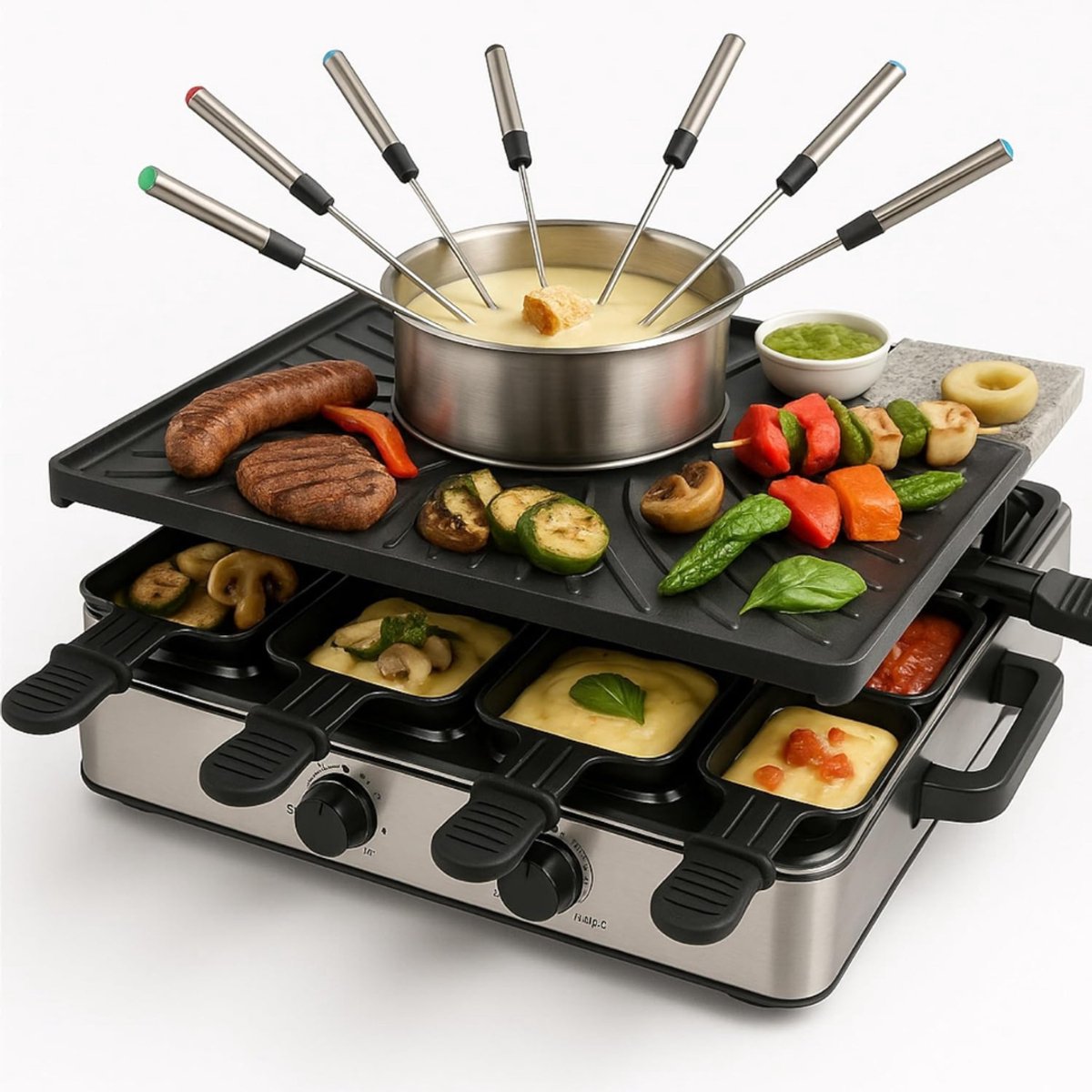 Maak van elk diner een onvergetelijke ervaring! Met de Raclettefondueset voor 8 personen creëer je moeiteloos gezellige avonden vol heerlijk eten en plezier.