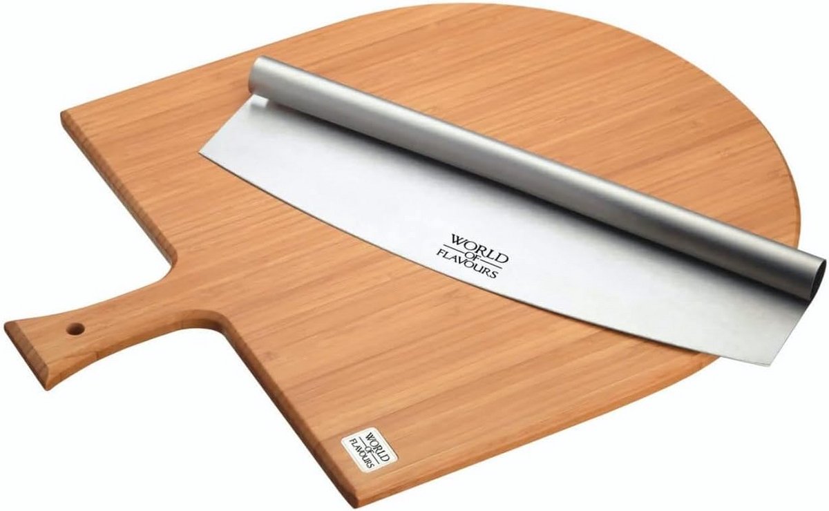 Bamboe Houten Pizzaplank en Mezzaluna Pizzasnijder Set - 34 x 35 cm (9101138766200)Bamboe Houten Pizzaplank en Mezzaluna Pizzasnijder Set – 34 x 35 cm (9101138766200)
