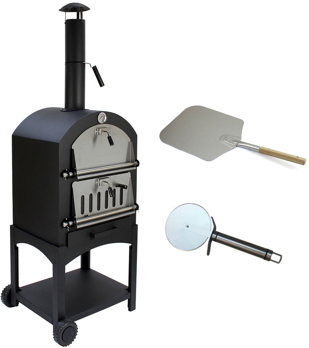 KuKoo Pizza oven buiten – inclusief pizzaschep + pizzasnijder – 64 cm x 43 cm x 156 cm – houtskool -Staal – multifunctionele buitenoven – pizza bbq (5056806826318)