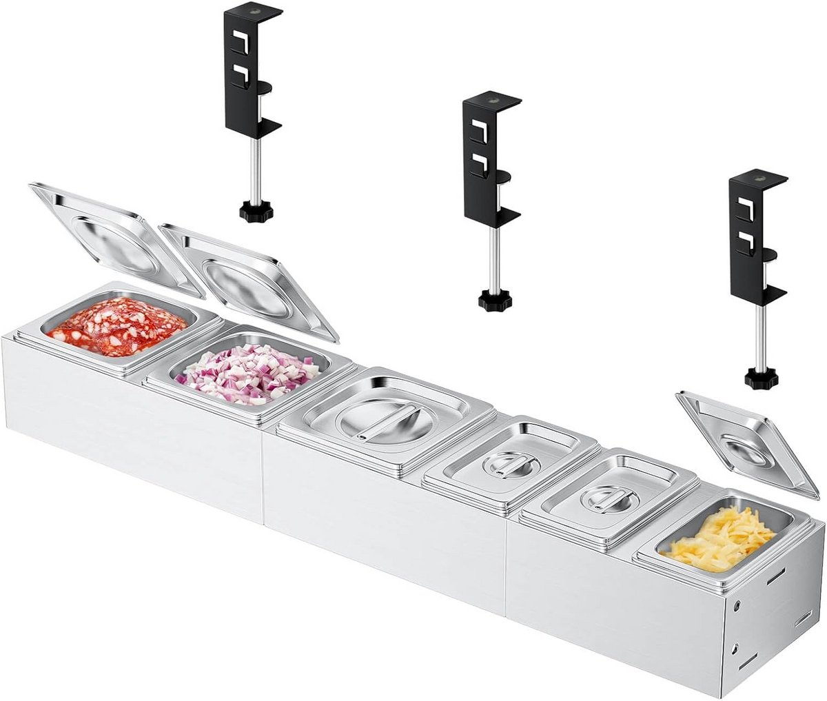 Ontdek de perfecte pizza ingrediëntenhouder en bijgerechtenhouder. Deze roestvrijstalen container met deksel is ideaal voor het organiseren van je keuken en grill. Met 6 stuks biedt deze set een handige oplossing voor het bewaren van al je pizza-accessoires en ingrediënten. Geniet van een opgeruimde kookervaring en zorg ervoor dat alles binnen handbereik is tijdens het bereiden van je favoriete pizza. (EAN: 9101139085072)