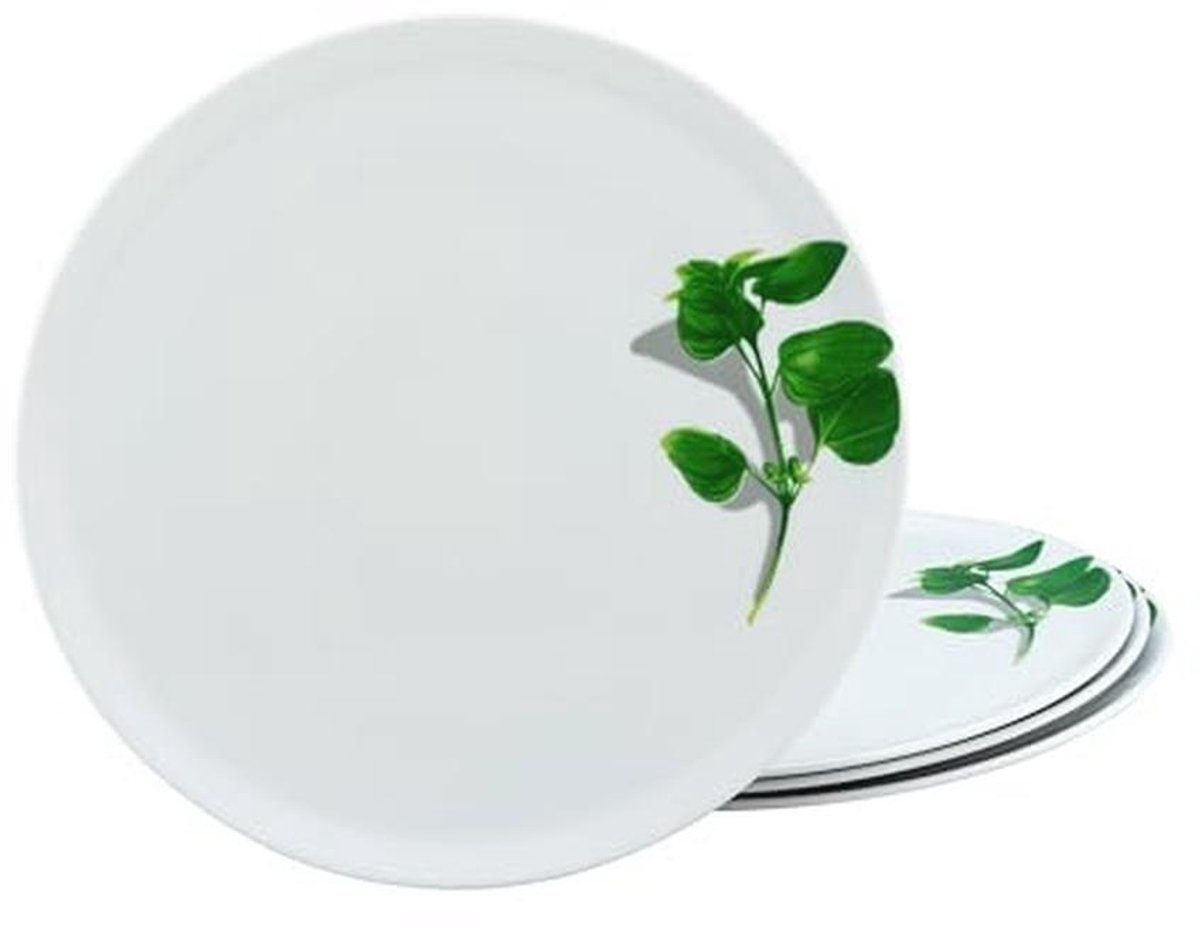 Deze set bevat 4 prachtig gevormde grote pizza borden met een diameter van 33 cm. Gemaakt van klassiek wit porselein in de beste Europese premium kwaliteit met een basilicumblad design. Deze borden zijn veelzijdig en niet alleen geschikt voor Italiaanse maaltijden, maar ook voor een alternatieve presentatie van diverse gerechten. Ze bieden duurzame vreugde en kunnen de hele dag door worden gebruikt. Deze serviezen zijn uiterst duurzaam en zijn bovendien vaatwasser- en magnetronbestendig. Deze tafelgerechten zijn ontworpen in Duitsland en geproduceerd in geselecteerde premium fabrieken om de kwaliteit te bieden die je thuis wilt. Ook is er vaak een snelle en langdurige breukgarantie beschikbaar. (EAN: 9101008355343)